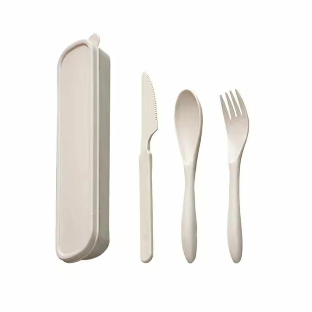 Kit completo com colher, garfo e faca em material sustentável, ideal para quem busca praticidade no dia a dia com consciência ambiental.
